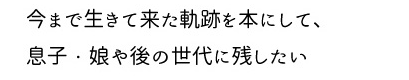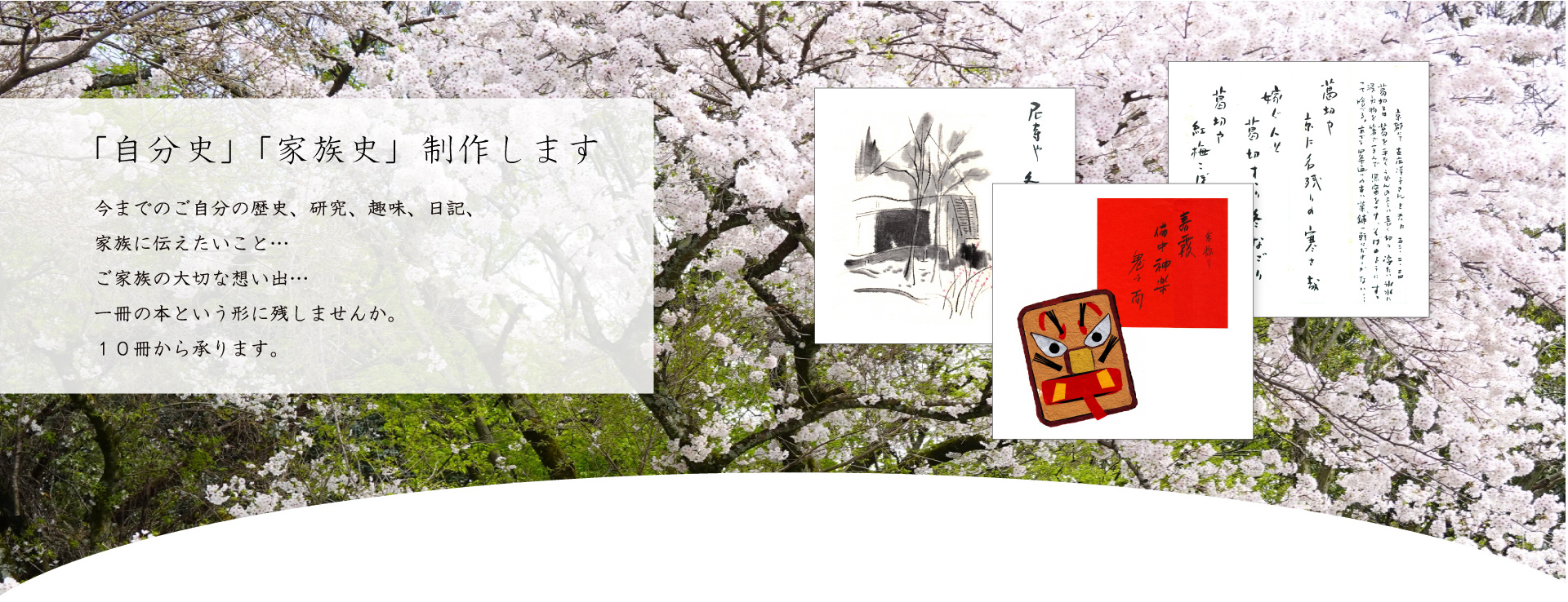 | ご自身のこれまでの歩みを、「自分史」として文章や写真で表現し、一冊の本にしませんか。 家系図の作成や写真撮影などもご相談ください。 想い出を形に残す、大切な自分史編纂の、お手伝いが出来れば幸いです。 |