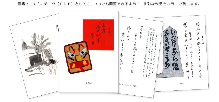 | 自叙伝、家族史、随筆集、詩集、画集、写真集、句集(俳句・短歌)、日記 等… また近年の台風、水害、震災等で大事な写真や資料がだめになってしまうケースが相次いでいます。 大切な資料をデータ化し、お預かりサービスも承っております。 |